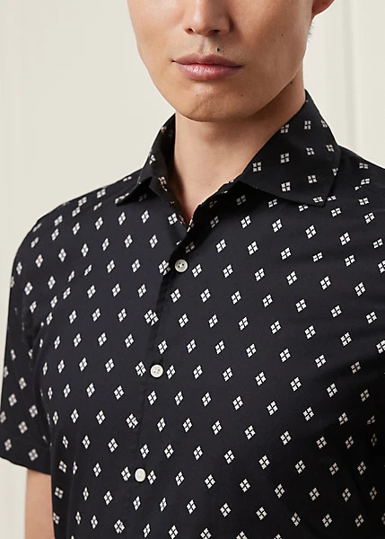 Inspiré d’une pièce vintage, le motif géométrique de cette chemise a été créé en exclusivité pour la collection Purple Label de la saison. Confectionné en Italie dans un sergé de coton léger, ce modèle est émaillé de boutons Corozo.