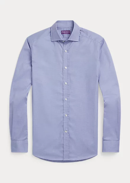 Confectionnée de main de maître en sergé de coton raffiné, cette chemise arbore un motif pied-de-poule miniature tissé dans une teinte exclusive.