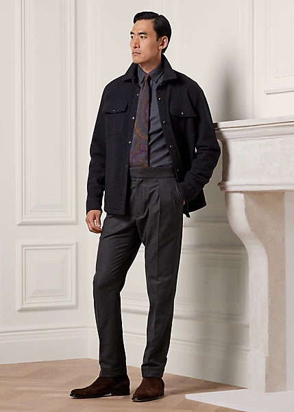Confectionnée en Italie, cette chemise en coton léger arbore un motif pied-de-poule classique décliné dans la palette anthracite de la saison.