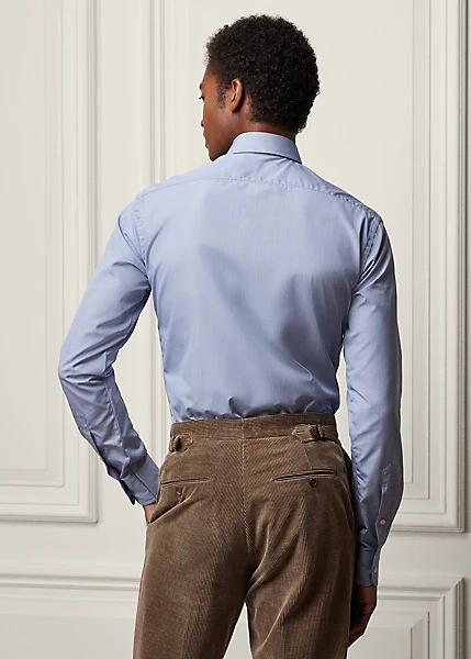 Confectionnée en popeline de coton à fils doubles de qualité 120s, cette chemise écossaise infroissable est proposée dans des couleurs créées en exclusivité pour Ralph Lauren Purple Label.