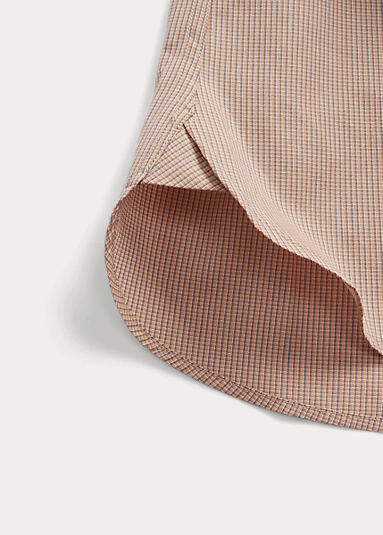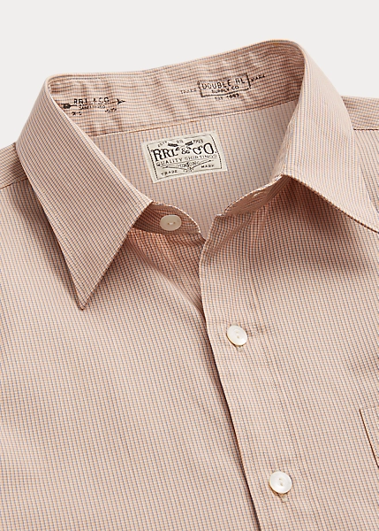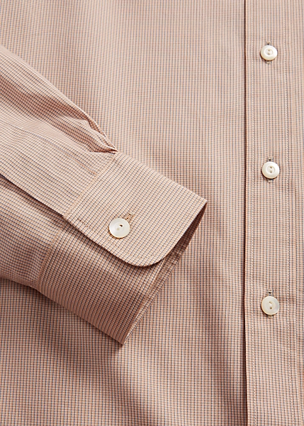 Cette chemise cintrée est confectionnée en coton tissé léger. Motif à carreaux teint en fil. Col à pointes de style vintage. Poche appliquée sur le côté gauche de la poitrine. Boutons en nacre véritable.