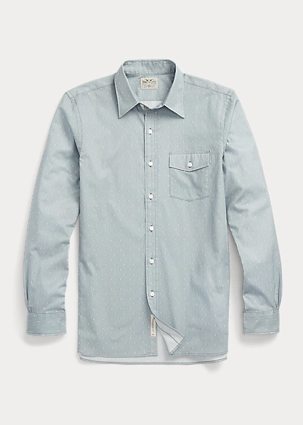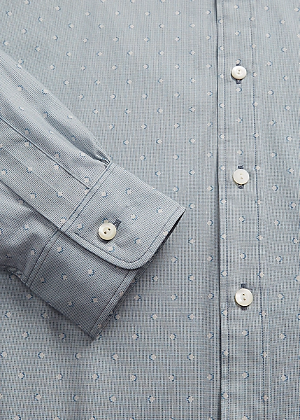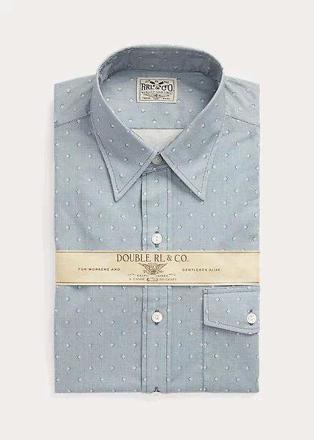Cette chemise cintrée est confectionnée en coton tissé léger. Col à pointes de style vintage. Poche boutonnée sur le côté gauche de la poitrine. Boutons en nacre véritable.