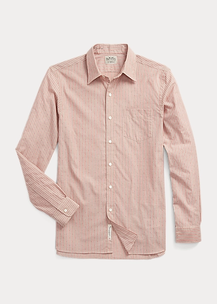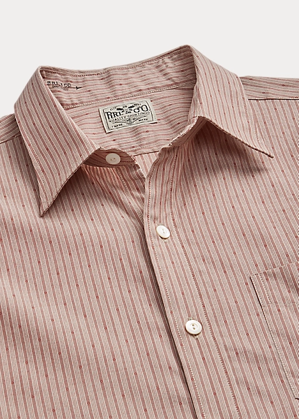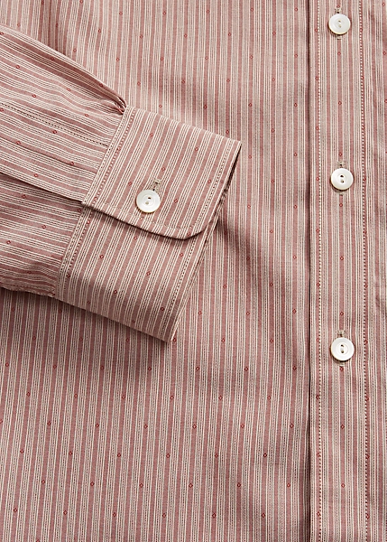 Cette chemise cintrée est confectionnée en coton tissé léger. Motif rayé d’inspiration vintage teint en fil avec motif jacquard géométrique. Col à pointes de style vintage. Poche appliquée sur le côté gauche de la poitrine. Boutons en nacre véritable.