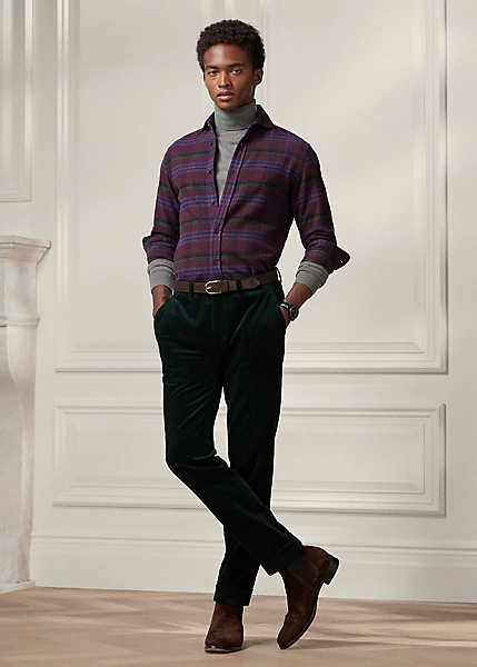 Cette chemise est confectionnée en Italie dans une flanelle de coton légère et grattée pour plus de douceur. Son motif écossais est créé en exclusivité pour Ralph Lauren Purple Label.