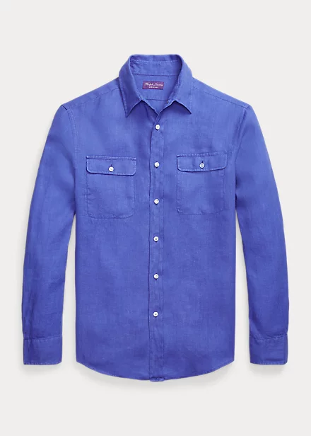 Confectionnée en Italie en lin luxueux, cette chemise d’inspiration utilitaire est ornée de boutons en nacre véritable.