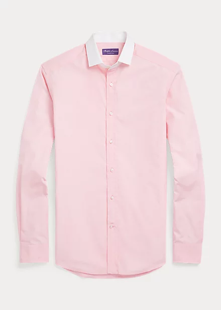 Arborant des boutons en nacre véritable, cette chemise est confectionnée en Italie dans un tissu de coton à fils doubles de qualité 120s et rehaussée d’un col en popeline.