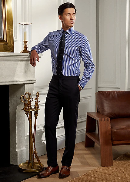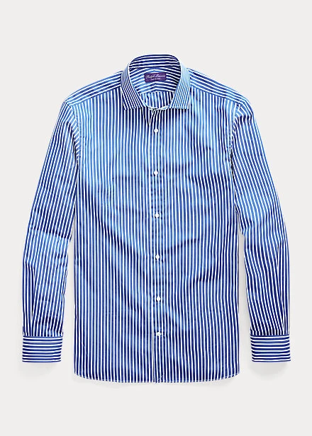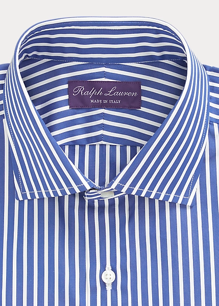 Cette chemise est confectionnée en Italie dans un coton rayé qui se caractérise par sa teinte profonde. Les boutons en nacre véritable apportent une finition sophistiquée.