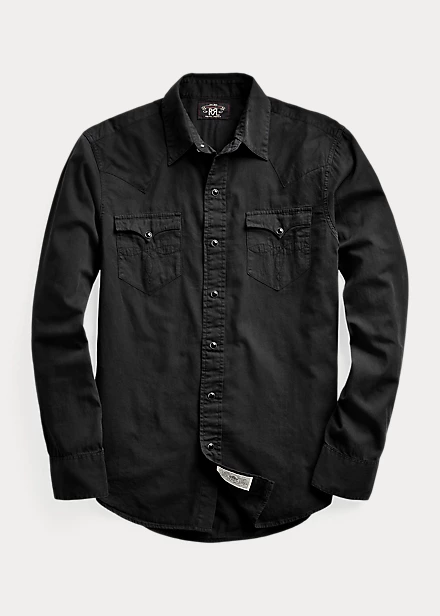 Chemise cintrée confectionnée en sergé de coton léger. Teint en pièce et délavé. Inspiré de chemises western du début des années 1940.