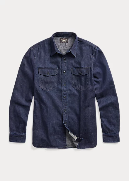 Chemise workwear confectionnée en denim léger japonais. Teinte en fil à l’indigo véritable et rincée. Finitions d’inspiration vintage. Sanforisé® pour minimiser le rétrécissement.
