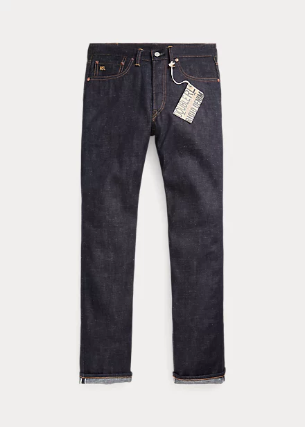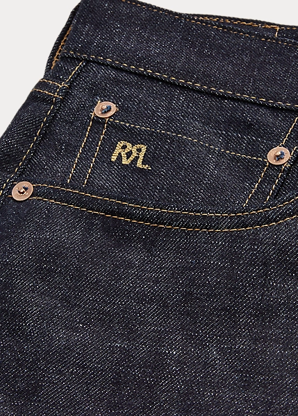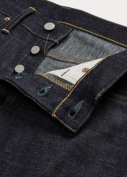 Jean droit confectionné aux États-Unis en denim japonais de coton et laine à lisière selvedge de 12 oz. Teint à l’indigo. Rigide. Sanforisé® pour limiter le rétrécissement. Braguette à boutons. Production limitée.