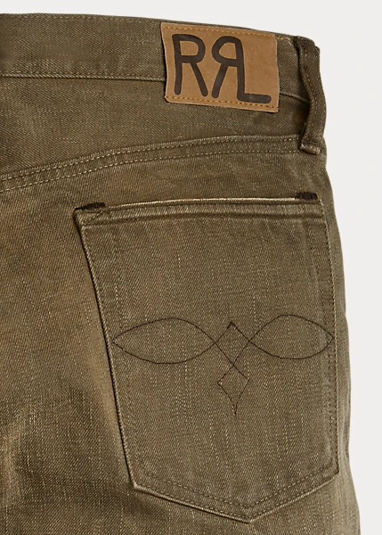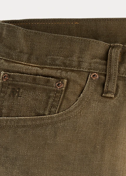 Jean slim confectionné en sergé de 13,6 oz. tissé de droite à gauche. Délavage brun usé. Sanforisé® pour minimiser le rétrécissement. Braguette zippée.