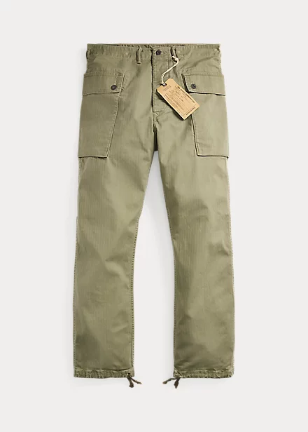 Confectionné en coton à chevrons de 7,8 oz et teint en pièce. Confection d’inspiration vintage avec braguette à boutons, poche cargo sur chaque hanche et ourlets à cordon de serrage. Sanforisé® pour minimiser le rétrécissement.