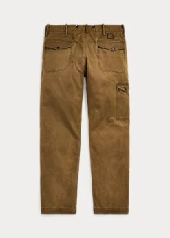 Confectionné dans un sergé de 8,7 oz tissé avec un mélange de lin, coton et laine. Genoux articulés pour une plus grande liberté de mouvement. Cordons de serrage sur les ourlets. Rincé.