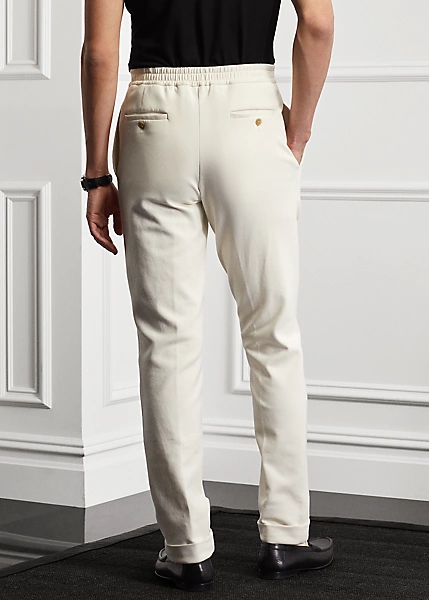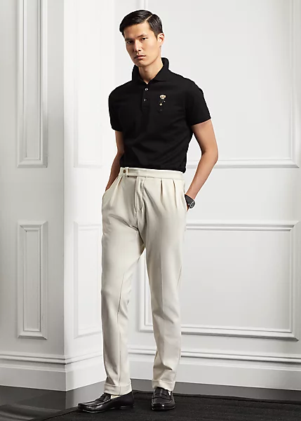 Ce pantalon est confectionné en Italie en jersey stretch dans une couleur exclusive au fini mat. Sa taille élastique derrière et ses pinces devant lui confèrent le look d’une coupe traditionnelle avec le confort moderne d’un modèle sportswear Ralph Lauren.