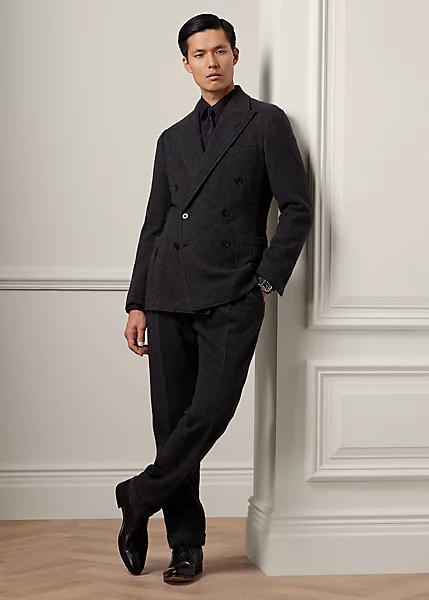 Ce pantalon à pinces est confectionné à la main en Italie dans un luxueux tissu à chevrons alliant laine et cachemire raffinés.