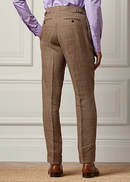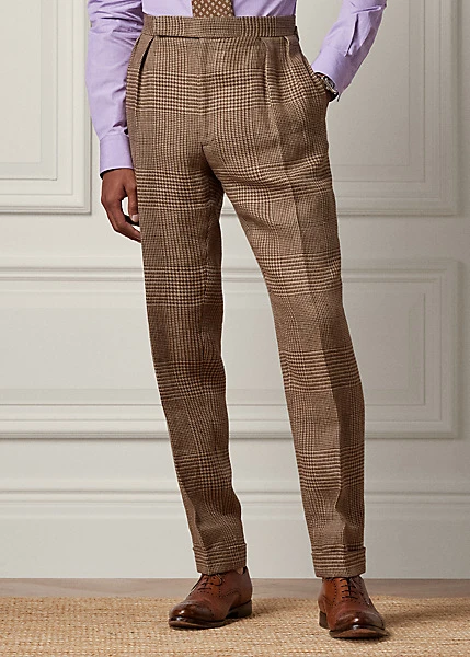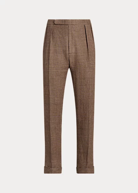Ce pantalon de costume à pinces est fait main en Italie dans un tweed de lin prince-de-galles créé en exclusivité pour Ralph Lauren Purple Label.