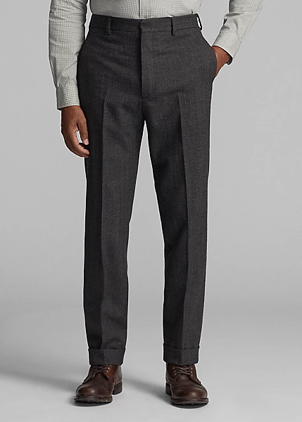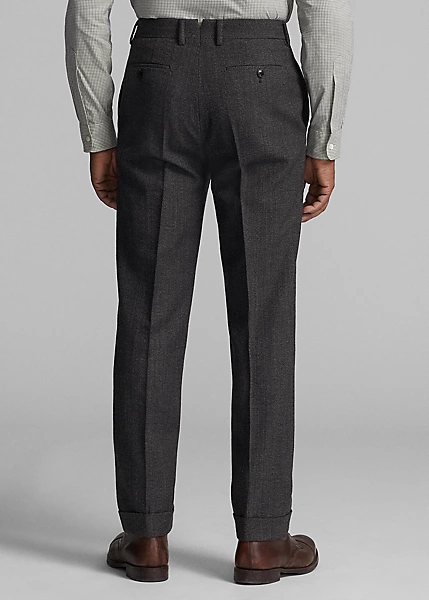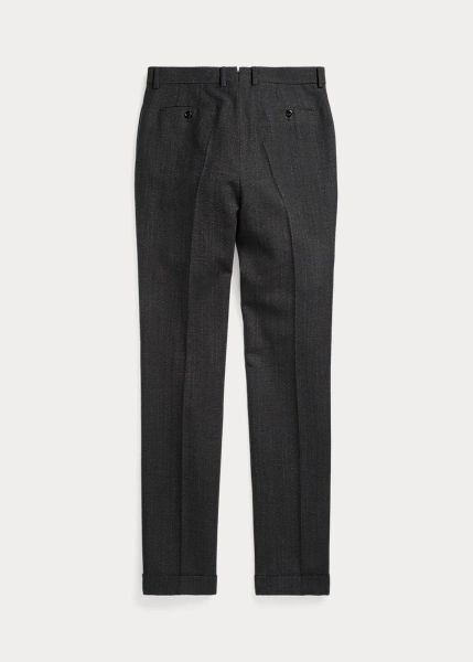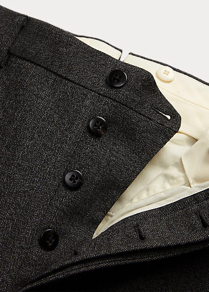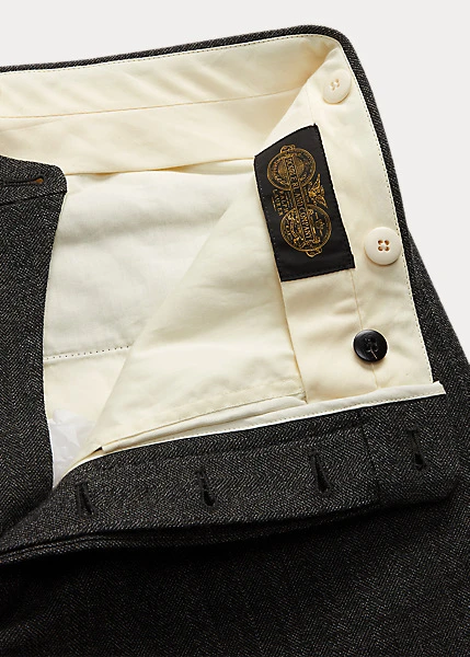 Pantalon slim confectionné en Italie. Le tweed de laine est créé en exclusivité pour Double RL par une filature de renom au Royaume-Uni. Braguette à boutons. Boutons en corne véritable.