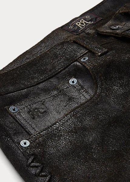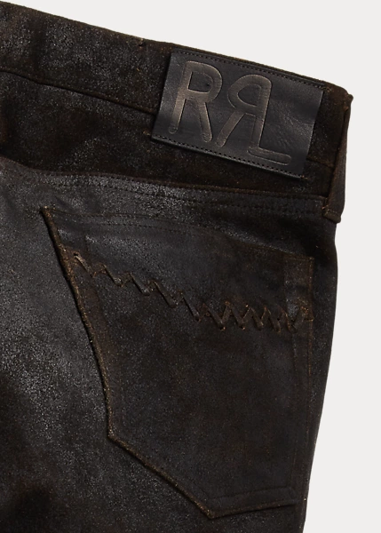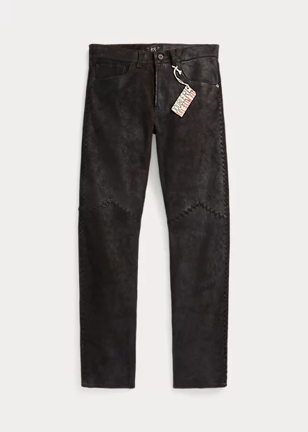 Pantalon slim en daim brut. Coupe cinq poches. Lacet en cuir sur les coutures. Doublure partielle. Braguette zippée.