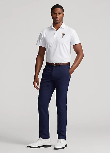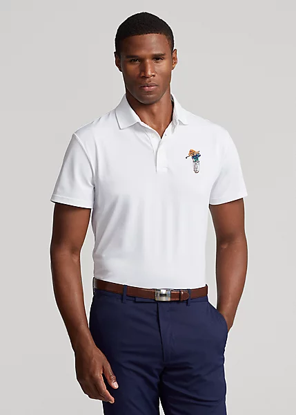 Le piqué stretch respirant de ce polo est confectionné en polyester recyclé, réduisant notre dépendance aux matériaux vierges à base de pétrole. Ce modèle est rehaussé sur le côté gauche de la poitrine du logo RLX et de notre emblématique Polo Bear en plein effort.