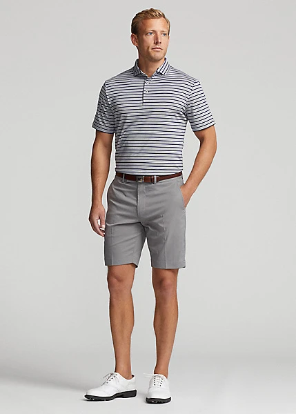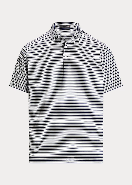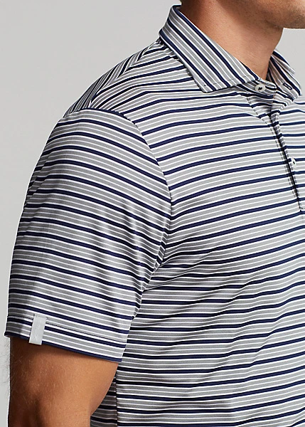 Le jersey stretch de ce polo rayé est confectionné en polyester recyclé, ce qui réduit notre dépendance aux matières vierges à base de pétrole.