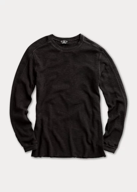 Ce pull à col rond à manches longues est confectionné en coton texturé. Fortement délavé pour un look usé.
