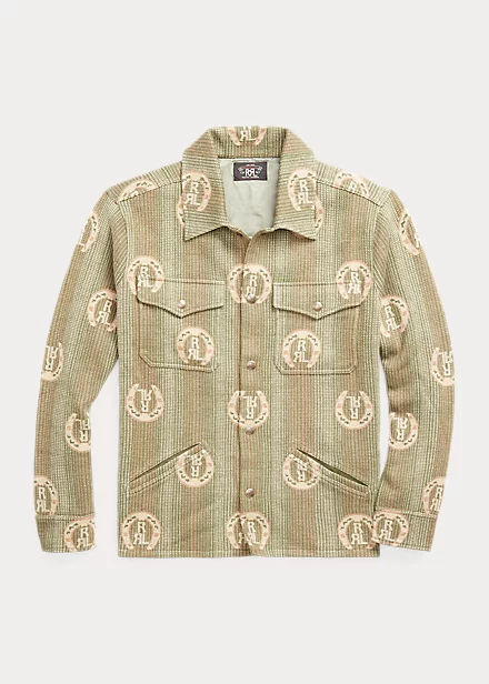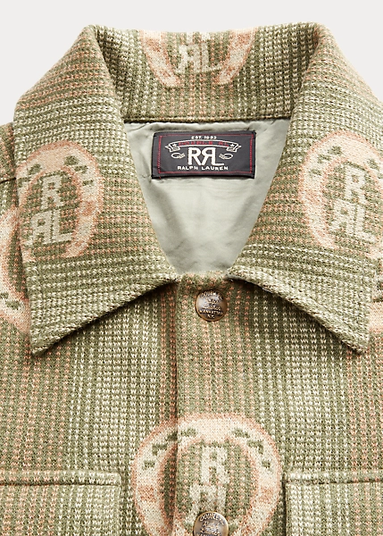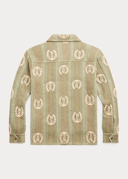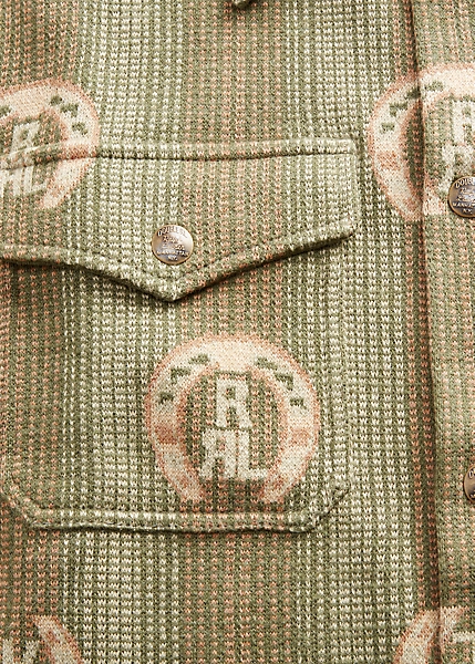 Surchemise légère tricotée avec des fils de coton selon une technique jacquard œil-de-perdrix. Motif de fer à cheval avec logo Double RL. Renforts en sergé à l’intérieur.