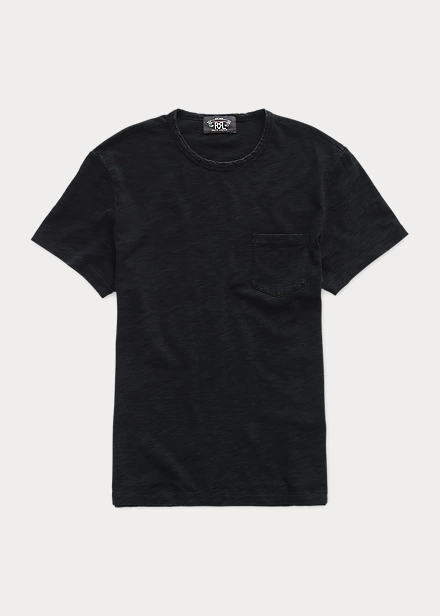 T-shirt à poche confectionné en jersey épais teint à l’indigo véritable.