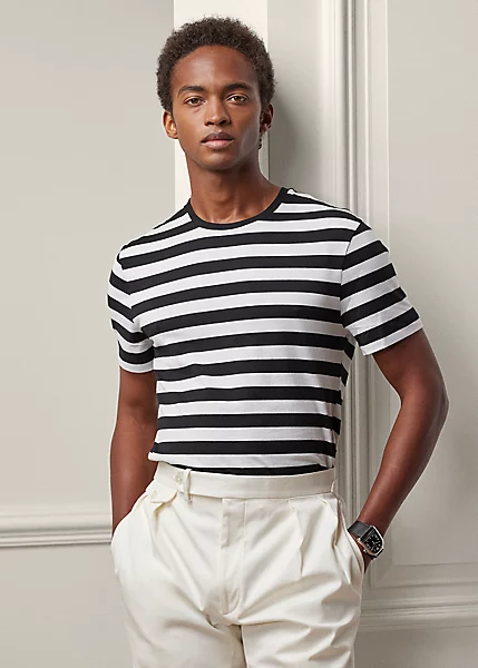 T-shirt Rayé à Col Rond En Fil D’Écosse